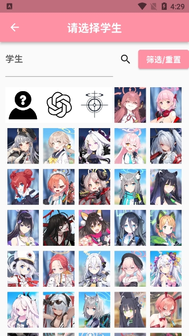 3、你还可以点击筛选来快速锁定你感兴趣的角色