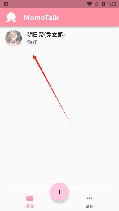 1、首先下载安装Momo Talk,进入软件后,需点击导航框的+号