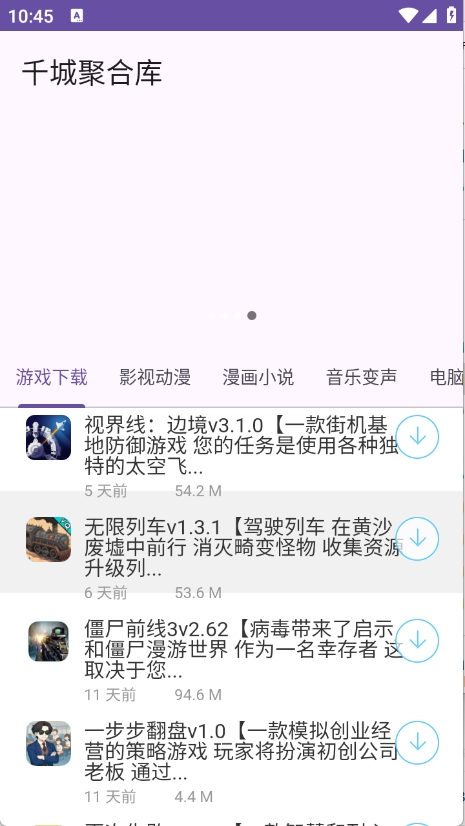 千城聚合库是一款有着海量优质应用的软件。软件内覆盖各种各样的影视动漫、小说阅读、音乐播放、手机游戏等,遇到喜欢的应用还可以直接下载。软件支持个性化推荐,可以给用户推荐符合兴趣爱好的应用,资源更新速度快,有需要的小伙伴快来下载吧!