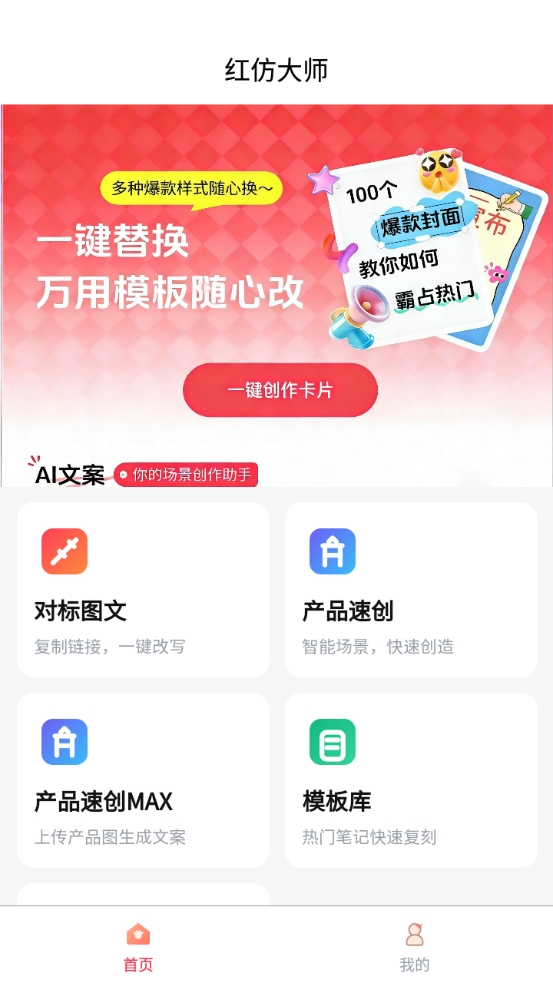 想要利用小红书发展自媒体的用户一定不要错过这款名叫红仿大师app的手机软件,内置强大的AI智能编辑系统,只需输入自己的想法,就可轻松生成爆款笔记,收录了美妆、穿搭、旅行、家居等多种不同类型的素材库,方便用户创造出更优质的作品。