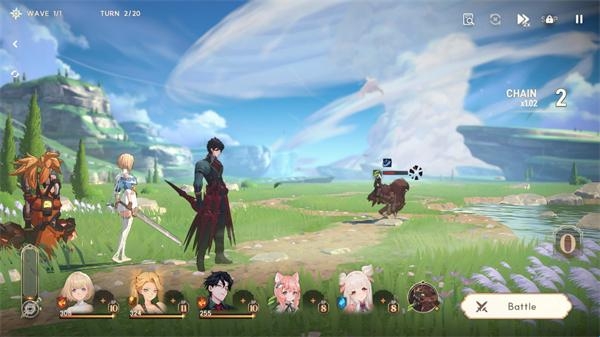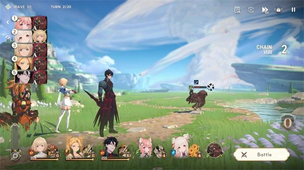 5、当所有角色都分配好技能后,点击下方的“Battle”按钮即可开始战斗,角色会根据指令自动执行攻击。